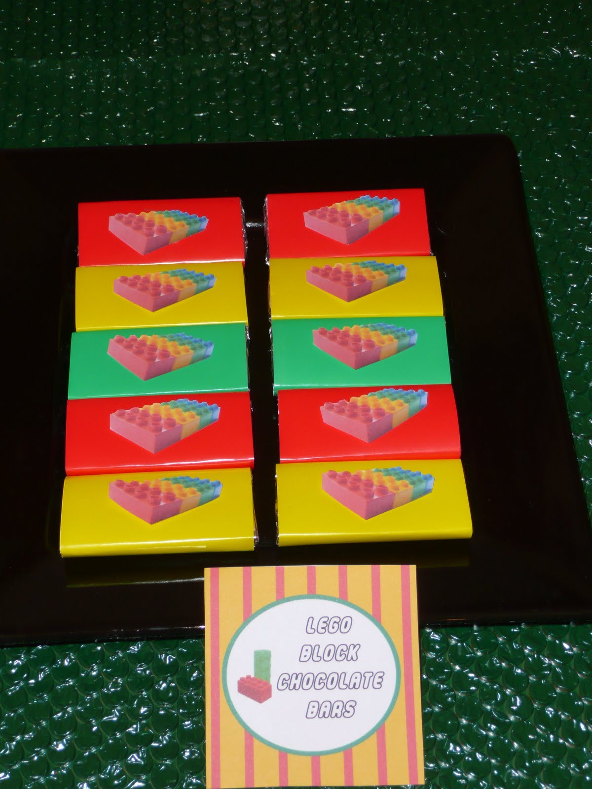 And chocolate bars covered to resemble lego blocks.